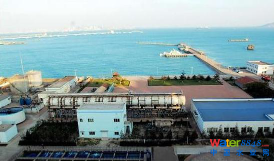 海水—→海水泵—→絮凝澄清設(shè)備—→配水槽—→超濾膜池—→超濾透過液泵—→超濾產(chǎn)水箱—→反滲透給水泵—→5m保安過濾器—→一級(jí)海水RO高壓泵及PX能量回收裝置—→海水反滲透淡化裝置—→工業(yè)水箱—→淡水提升泵—→5m保安過濾器—→淡水升壓泵—→二級(jí)反滲透脫鹽裝置—→預(yù)脫鹽水箱—→至后續(xù)化學(xué)除鹽系統(tǒng)。