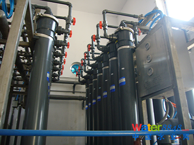 MF:微濾是按孔徑來劃分的,孔徑范圍為0.1-1um,微濾可分為外置式和侵入式兩種,外置式又分為外壓式和內(nèi)壓式,侵入式主要是負(fù)壓抽吸,主要應(yīng)用領(lǐng)域就是膜生物反應(yīng)器。MF主要應(yīng)用在污水深度處理領(lǐng)域,主要作為反滲透的預(yù)處理、污水回用循環(huán)冷卻水的處理、景觀用水、生活雜用水處理。 |