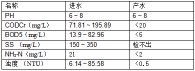 調(diào)節(jié)池—→機(jī)械格柵—→厭氧—→兼氧—→膜生物反應(yīng)器—→清水池