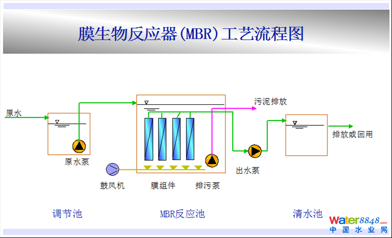 (4)排水的回收再利用:MBR技術可以作為中水,或反滲透的前處理使用