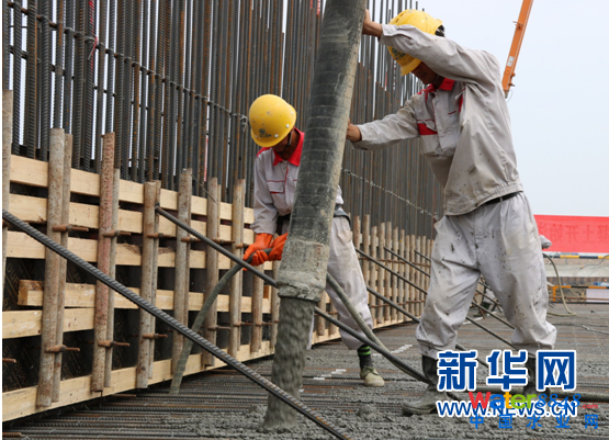 圖為建筑工人混凝土澆筑作業(yè)中。新華網(wǎng)張益民 攝