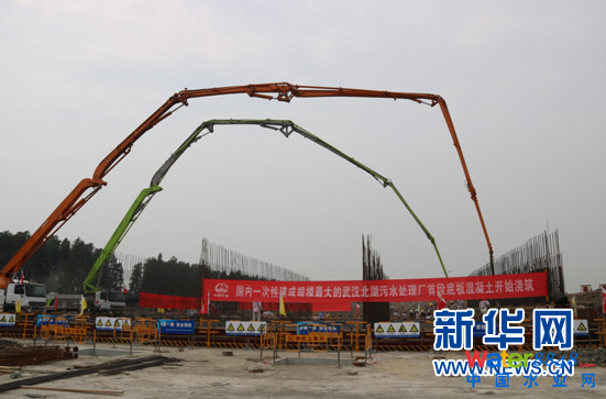 新華網(wǎng)武漢9月19日電(張益民 戴楚岑)18日,隨著數(shù)百方混凝土在泵車的輸送下噴涌而出,由中鐵上海局集團承建的全國一次性建成規(guī)模最大的污水處理廠——武漢北湖污水處理廠土建工程正式開工。