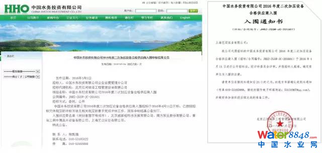 2016年,公司成功入圍國家級水務運營單位——中國水務投資有限公司二次供水設備合格供應商名錄。