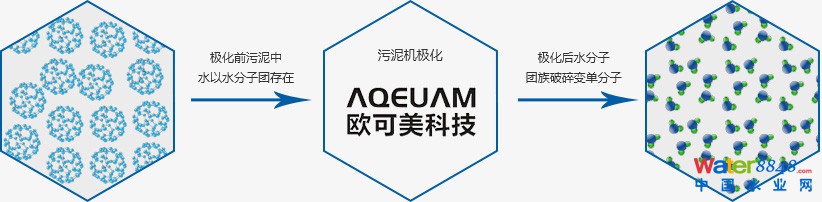 通過數(shù)碼智能極化裝置實現(xiàn),該裝置是采用特殊合金體并融合納米發(fā)生層,當污水流經(jīng)合金體時,通過納米發(fā)生層和特殊合金作用,合金體邊會向水中釋放出一種能量,水分子被激活,水分子團族被打碎,水以單分子形態(tài)存在,水的滲透性加強,水分子容易從污泥脫出。
