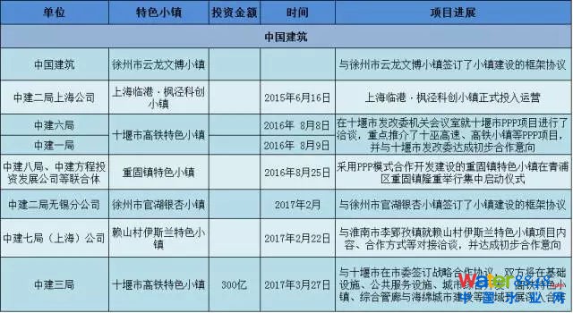 根據(jù)基建通公眾號(hào)的不完全統(tǒng)計(jì),目前各大建企打造特色小鎮(zhèn)的具體情況如下(點(diǎn)擊圖片可放大):