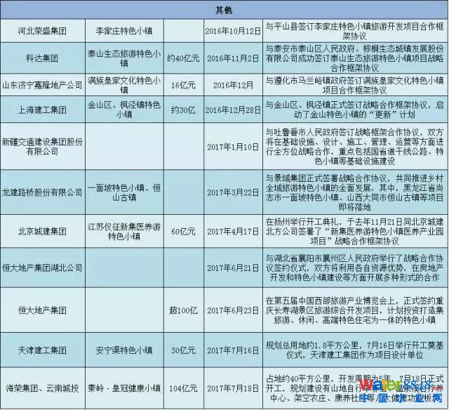 在這樣的背景下,特色小鎮(zhèn)成為各大企業(yè)下一個(gè)投資的風(fēng)口,肩負(fù)著推動(dòng)城鄉(xiāng)工業(yè)發(fā)展的大使命,無論是碧桂園、華僑城、綠城、華夏幸福等品牌房企,還是宏泰等產(chǎn)業(yè)地產(chǎn)企業(yè),或是上海元合、內(nèi)蒙億利金威這類地方企業(yè),都將轉(zhuǎn)型的戰(zhàn)略指向“特色小鎮(zhèn)”。在此列舉部分向同業(yè)展示:
