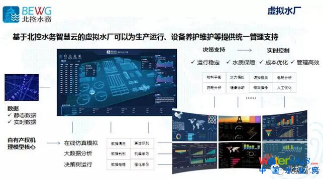 北控水務(wù)本次發(fā)布的“污水廠數(shù)字雙胞胎”概念版,以三維虛擬水廠為基本呈現(xiàn)形式,基于企業(yè)云及IoT、大數(shù)據(jù)平臺,運(yùn)用在線模擬和大數(shù)據(jù)分析技術(shù),開發(fā)出水質(zhì)虛擬儀表和微生物圖像識別等大數(shù)據(jù)工具,實現(xiàn)水質(zhì)預(yù)測、水量預(yù)測、生化分析、物料平衡、工藝調(diào)整模擬、設(shè)備故障診斷等功能,建立起了數(shù)據(jù)驅(qū)動的智慧化機(jī)器主導(dǎo)模式,為現(xiàn)北控水務(wù)高效卓越運(yùn)營管理提供了支撐。