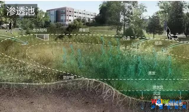 雨水調(diào)蓄池的形式多樣,可以是小區(qū)內(nèi)的雨水花園,也可以是城市中的口袋綠地,在有效利用了天然綠地或濕地及水生和濕生植物群落基礎(chǔ)上,大大小小的調(diào)蓄池成為了水質(zhì)凈化-蓄滯水-地下水回補(bǔ)多級多功能濕地系統(tǒng)中的核心環(huán)節(jié),同時成為地下水回補(bǔ)的前提條件。