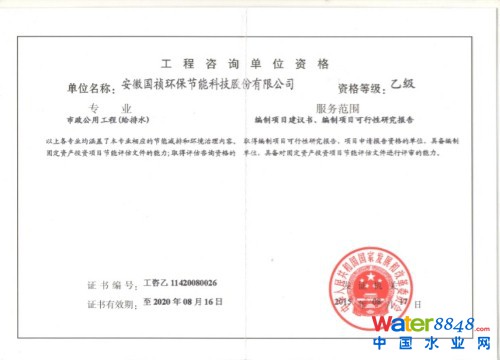 核心提示: 國(guó)禎環(huán)保設(shè)計(jì)研究院經(jīng)營(yíng)業(yè)務(wù)范圍主要有:市政污水處理廠及配套管網(wǎng)工程咨詢和設(shè)計(jì)、工業(yè)廢水處理工程咨詢和設(shè)計(jì)、污水處理回用工程咨詢和設(shè)計(jì)、污泥處理工程咨詢和設(shè)計(jì)、河道及湖泊治理工程咨詢和設(shè)計(jì)、土壤及地下水污染評(píng)估及修復(fù)、污水處理廠各專業(yè)設(shè)計(jì)優(yōu)化等,現(xiàn)持有國(guó)家住建部環(huán)境工程(水污染防治工程)專項(xiàng)設(shè)計(jì)甲級(jí)證書、國(guó)家發(fā)改委市政公用工程(給排水)工程咨詢乙級(jí)證書。 國(guó)禎環(huán)保設(shè)計(jì)研究院豐富的設(shè)計(jì)、咨詢經(jīng)驗(yàn)?zāi)軌驗(yàn)榭蛻籼峁╉?xiàng)目建議書、可行性研究報(bào)告、初步設(shè)計(jì)及施工圖設(shè)計(jì)服務(wù)。累計(jì)完成各類項(xiàng)目工