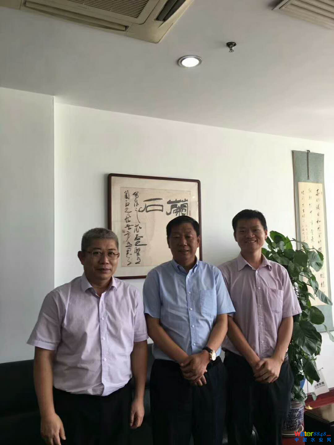 我司董事長徐宏康(左一)、總經(jīng)理謝學(xué)富(右一)與桑德副總裁張傳剛(中)合影