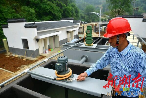 5月11日,慈利縣二坊坪鎮(zhèn)二坊坪村,工人在安裝污水處理設(shè)備。2017年7月,慈利縣啟動25個鄉(xiāng)鎮(zhèn)污水處理廠項目建設(shè),計劃2019年年底將全部建成。建成后,可實現(xiàn)生活污水處理能力2萬噸每日,鄉(xiāng)鎮(zhèn)生活污水集中處理率達80%以上。