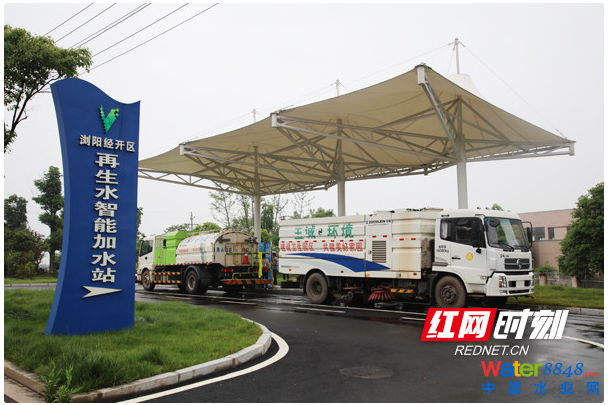 湖南首個再生水綜合利用項目瀏陽經(jīng)開區(qū)再生智能加水站。