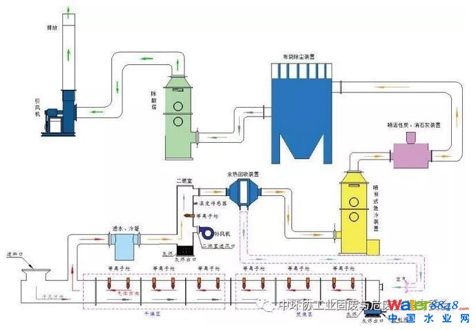 等離子火炬隧道窯可以直接處理含水率30%到90%的污泥、固態(tài)、半固態(tài)、液態(tài)廢棄物,設(shè)備處理能力從每天0.5噸到200噸,尤其適合廠礦企業(yè)及規(guī)模大小不等的化工園區(qū)污水處理廠。等離子體火隧道窯通入過量空氣,污泥中有機(jī)物因氧化反應(yīng),生成CO2、H2O等單質(zhì)物質(zhì),其中汞、鋅、鉛、錫、銅等重金屬以氧化物形式隨煙氣排出,經(jīng)活性炭噴射裝置,噴射活性炭富集后再行處理。