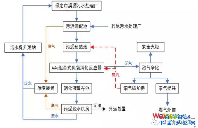 本項(xiàng)目日處理市政污泥300噸(含水率80%),總投資1.39億元,采用“AAe高濃度高效率厭氧消化+板框脫水+沼氣提純”工藝,由中國(guó)市政工程華北設(shè)計(jì)研究總院設(shè)計(jì),其核心技術(shù)設(shè)備AAe高濃度中溫厭氧消化成套技術(shù)系統(tǒng)設(shè)備由艾爾旺新能源環(huán)境有限公司提供并建設(shè)實(shí)施。
