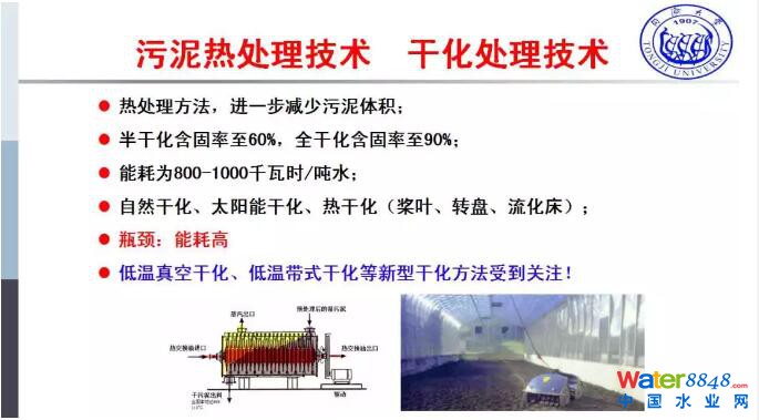 第二個(gè)厭氧消化遇到的瓶頸是沼液的處理,如果是單獨(dú)集中的厭氧消化達(dá)標(biāo)排放的成本是相當(dāng)高的,當(dāng)然在這一個(gè)方面現(xiàn)在目前厭氧技術(shù)也得到的一定應(yīng)用,但是總體來說沼液還是問題,像保定直接在污水廠處理到一定水平,排到污水廠去協(xié)同處理,這個(gè)問題就得到比較好的解決。在沼液方面現(xiàn)在也有一些新的研究,好氧堆肥的技術(shù)很成熟,在我們國(guó)家利用很多,存在的問題一個(gè)是產(chǎn)品的保障,厭氧消化是停不下來的,二十天就是二十天,穩(wěn)定化的程度有保障,但是好氧堆肥取決于添加的輔料,而這個(gè)輔料是需要錢去買的,在這個(gè)方面怎么樣去實(shí)現(xiàn)質(zhì)量的控制,同時(shí)臭味的問題、占地的面積、輔料添加、高溫好氧、智能化控制等問題得到了很好的關(guān)注。對(duì)于干化處理,畢竟它是一個(gè)能耗比較高的技術(shù),所以它是采用的熱化的方法,在這個(gè)方面我們國(guó)家的企業(yè)也做了大量的工作,現(xiàn)在有低溫真空干化,低溫帶式干化等新型干化方法,取得了很好的進(jìn)展。但是我們認(rèn)為把污泥當(dāng)中的水拿出來,第一步還是要想辦法通過機(jī)械的方法,因?yàn)闄C(jī)械是最便宜的方法,拿不出來的時(shí)候用干化的方法也是一種比較好的途徑。