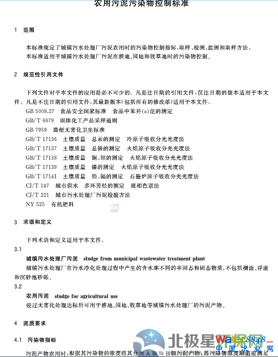 - 日前, 《農(nóng)用污泥污染物控制標準》已經(jīng)發(fā)布。標準號:GB 4284-2018。標準將于2019月6月1日實施。標準規(guī)定了城鎮(zhèn)污水處理廠污泥農(nóng)用時污染物的控制指標、取樣、監(jiān)測、檢測和取樣方法。標準適用于城鎮(zhèn)污水處理廠污泥在耕地、園地和牧草地時的污染物控制。