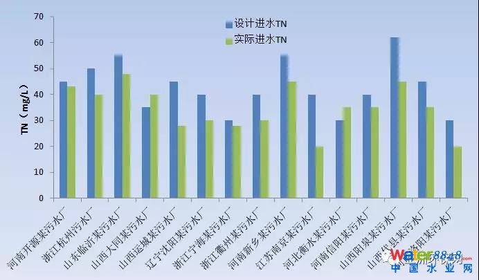 我們做了一些實(shí)際污水廠的進(jìn)水設(shè)計(jì)值與實(shí)際值的比較,可以看出從南到北很多污水處理廠的COD設(shè)計(jì)值與實(shí)際值有較大的差距,實(shí)際進(jìn)水COD遠(yuǎn)遠(yuǎn)低于設(shè)計(jì)值,只有50%左右,氮的值也會(huì)低一些,但低的并不是很多。所以,很多污水處理廠的池容是有冗余的,這種冗余的潛力在升級(jí)改造時(shí)就可能得到利用,當(dāng)然這會(huì)涉及到其他單元的問(wèn)題,比如沉淀池的問(wèn)題、進(jìn)水管線的問(wèn)題等等,需要進(jìn)行實(shí)際評(píng)估。