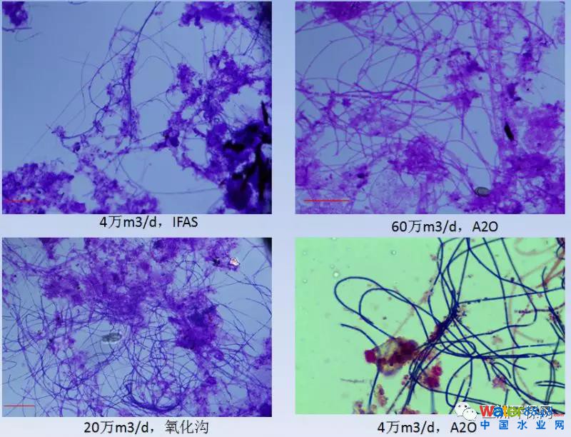 很多年來(lái)我們一直對(duì)各地的這種現(xiàn)象進(jìn)行分析和調(diào)查,實(shí)際上這種現(xiàn)象與污泥膨脹、低溫有密切的關(guān)系,這些調(diào)查包括微生物方面的鑒定與水質(zhì)方面的分析。我們發(fā)現(xiàn)在很多污水廠冬季出現(xiàn)的這種現(xiàn)象是Microthrix Parvicella(微絲菌)這種絲狀菌的過(guò)度繁殖造成的,這種微生物在泥齡較長(zhǎng)、生物脫氮除磷工藝、水溫低于15度的環(huán)境中容易大量出現(xiàn),這種情況和歐洲的很多污水廠類似。