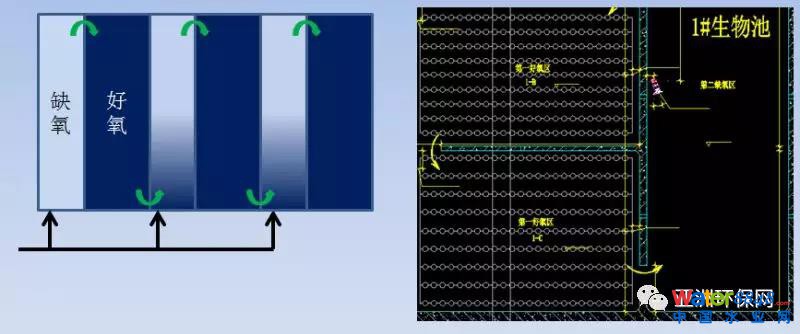 移動(dòng)式填料IFAS工藝的優(yōu)點(diǎn)是填料的比表面積大,但設(shè)計(jì)不當(dāng)會(huì)出現(xiàn)很多問(wèn)題,比如填料流失、填料堵塞篩網(wǎng)、填料在池內(nèi)角落堆積、曝氣設(shè)置的問(wèn)題等等,這些方面涉及很多工程細(xì)節(jié),主要是生物池水力流態(tài)方面的問(wèn)題,需要格外注意。