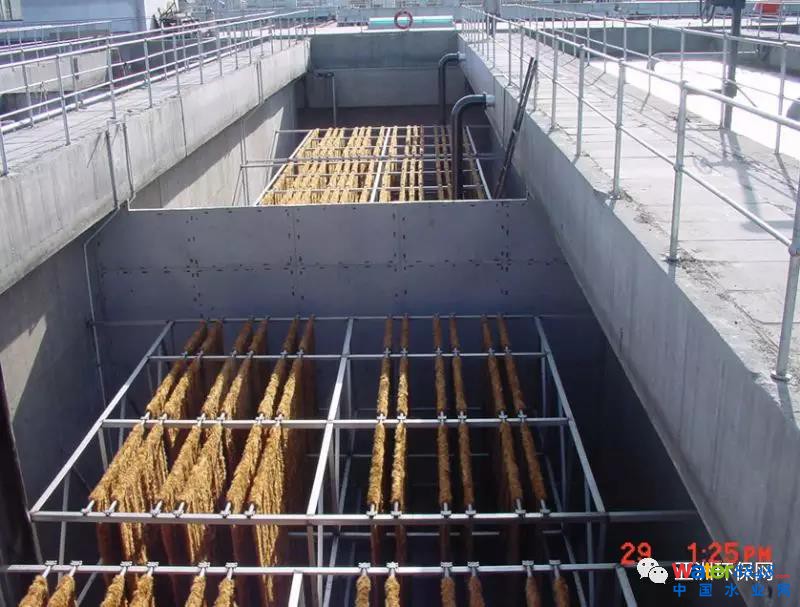 IFAS工藝有固定式填料和移動(dòng)式填料,兩種形式各有利弊,固定式填料改造起來(lái)相對(duì)簡(jiǎn)單,有的以框架的形式直接放在曝氣池中,其他需要考慮的環(huán)節(jié)較少,但固定式填料容易滋生蠕蟲(chóng),需要定期采取措施清除。下面這個(gè)圖是北京某污水處理廠采用的固定式填料的IFAS工藝,改造后的效果很好。
