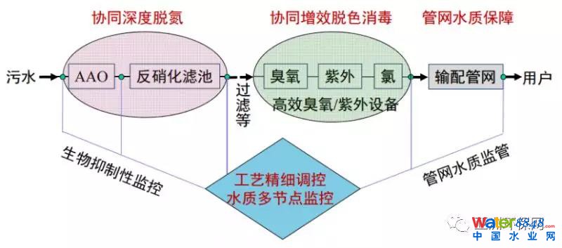甘一萍指出,重點還是在深度處理的脫氮和除色。現(xiàn)在二級出水一級B的出水,硝酸鹽和總氮還是很高的,另外COD要進一步降低,還有脫色、消毒、殺菌的要求。所以在關(guān)鍵性的單元,是生物濾池深度脫氮和臭氧氧化方面的研究。主要是協(xié)同處理提高出水脫氮除色效能,通過AAO和反硝化濾池協(xié)同深度脫氮,協(xié)同增效脫色消毒是通過多級加藥和臭氧,進行消毒和脫色的功能,最終滿足景觀環(huán)境的要求。