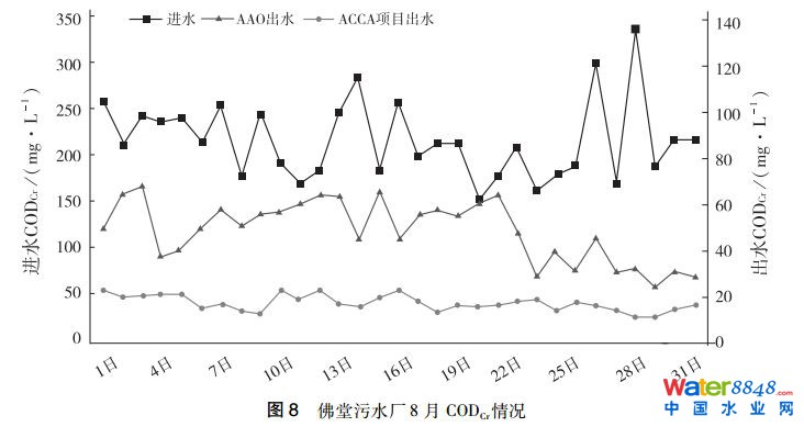 佛堂污水廠8月份進(jìn)、出水水質(zhì)情況