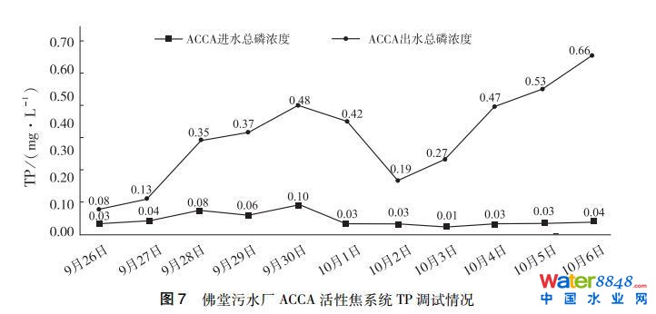 佛堂污水廠總磷經(jīng)過(guò)AAO池生化除磷+高效沉淀池+ACCA活性焦多級(jí)吸附系統(tǒng)處理后,出水總磷在0.2 mg/L以下,符合《地表水質(zhì)量標(biāo)準(zhǔn)》(GB 3838—2002)中Ⅲ類水標(biāo)準(zhǔn)。
