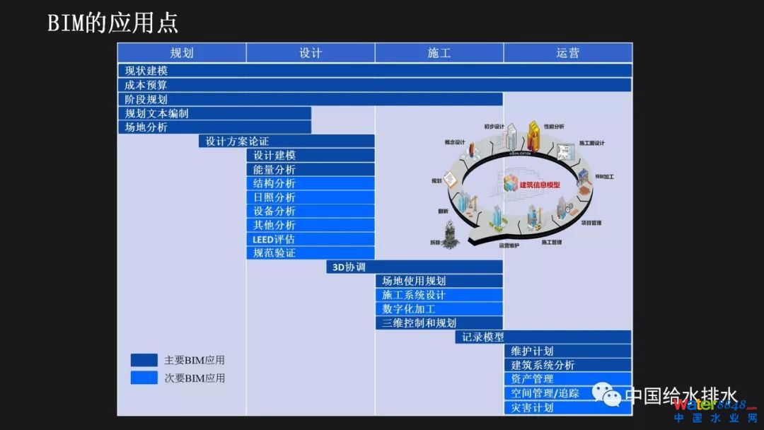 基于BIM技術(shù)的水廠智慧化構(gòu)建與運(yùn)行 上海市政工程設(shè)計(jì)研究總院(集團(tuán))有限公司王如華副總工程師按照工程建設(shè)階段簡(jiǎn)述了BIM在智慧水廠中的應(yīng)用