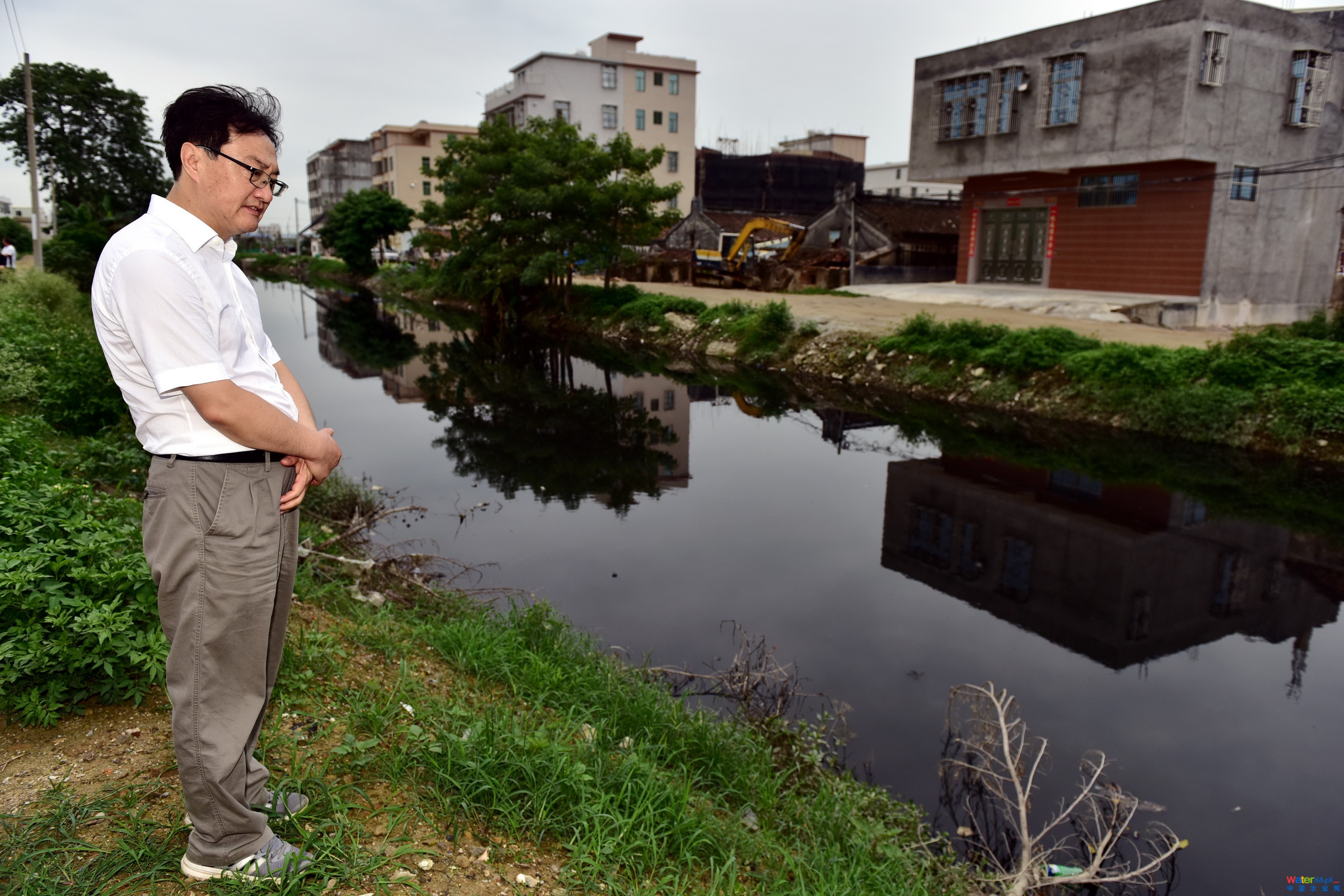 6月15日,中央第五環(huán)境保護督察組在汕頭市督察時,站在谷饒鎮(zhèn)大坑村河涌邊,督察組副組長翟青心情沉重,一時無語。攝影/章軻