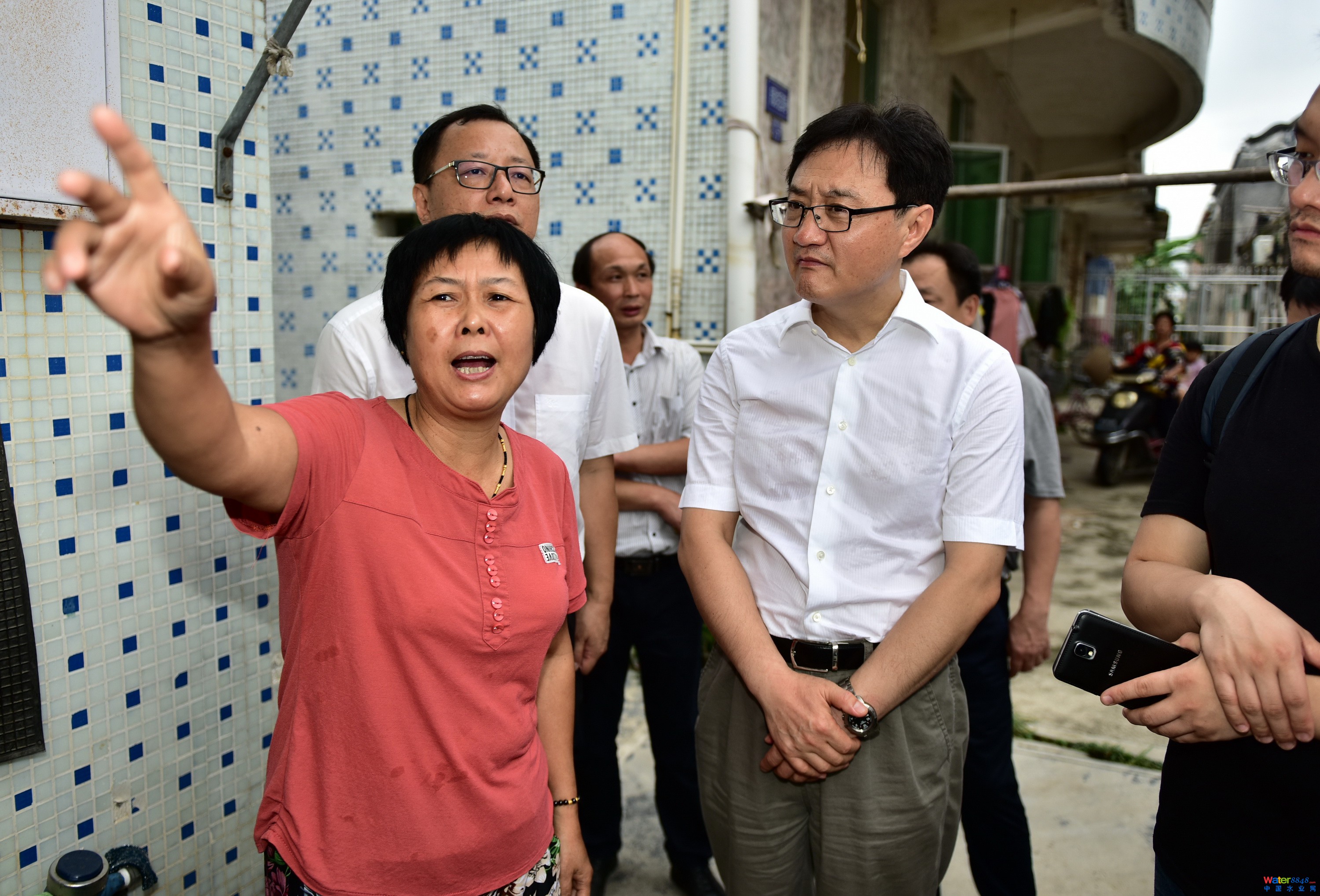 6月15日,中央第五環(huán)境保護督察組在汕頭市督察時,督察組副組長翟青鼓勵當?shù)卮迕翊螂娫捙e報污染情況。攝影/章軻