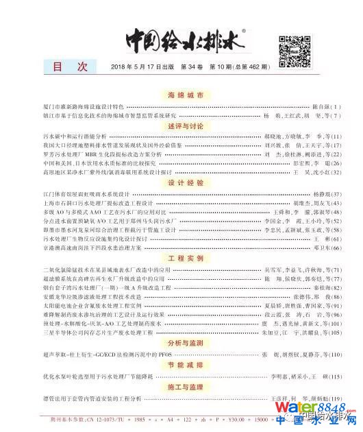 《中國(guó)給水排水》2018年第10期目次(共25篇,引用文獻(xiàn)最方便)