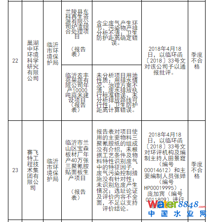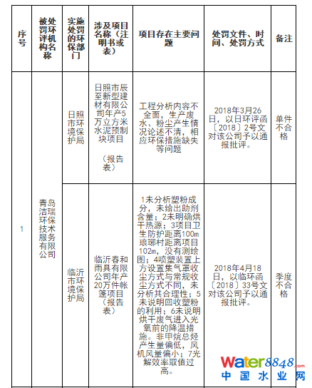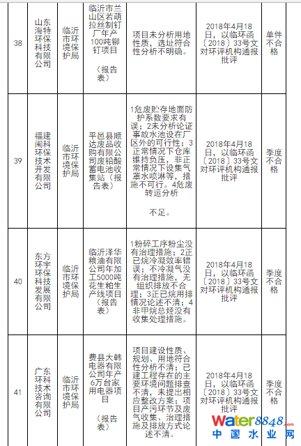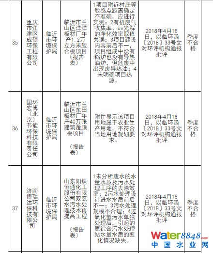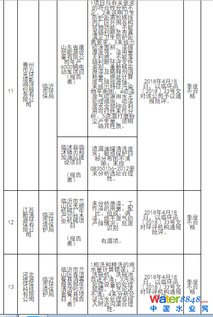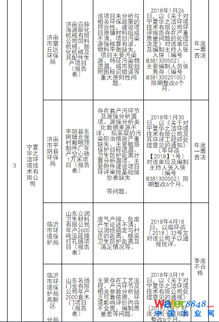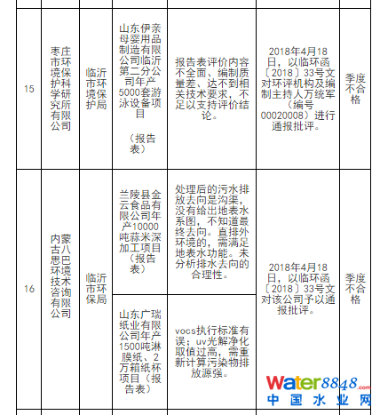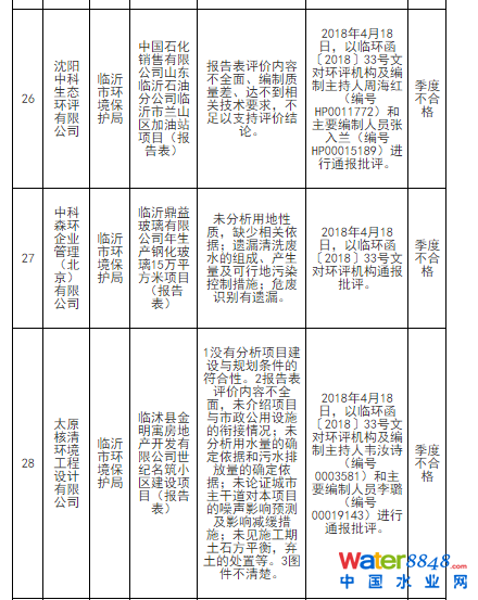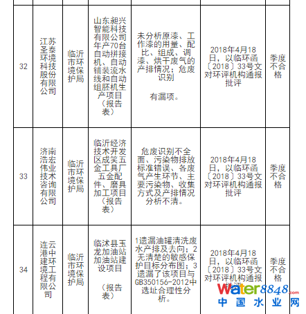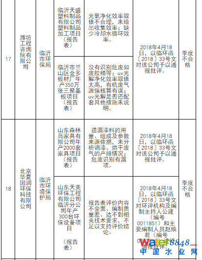 山東通報2018年第一季度環(huán)評機(jī)構(gòu)文件質(zhì)量考核情況