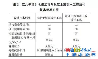 南寧市邕江上游引水工程主要利用其中引水暗渠及引水隧洞段。原設計技術標準與邕江上游引水工程技術標準對比情況如表3所示。