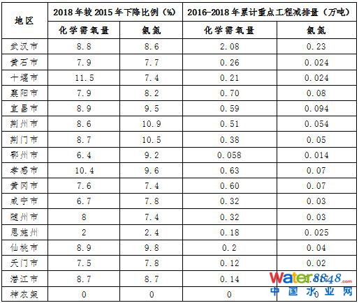 2018年度各地主要水污染物總量減排目標