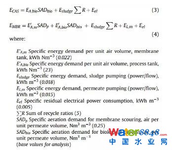 對于經(jīng)典活性污泥法和MBR工藝來說,SED主要貢獻(xiàn)因子是曝氣,除了用于給生物質(zhì)提供氧氣之外,對于MBR,還用于膜的沖洗。