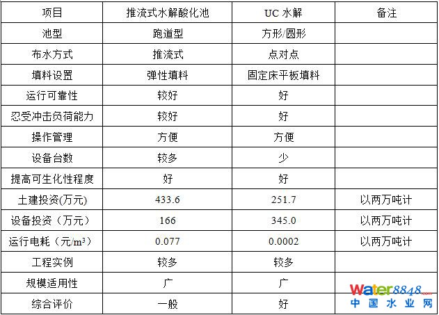 根據(jù)對(duì)2個(gè)比選方案的定性及定量比較結(jié)果來看,UC水解工藝占有明顯優(yōu)勢,是適合工程應(yīng)用的水解酸化技術(shù)。