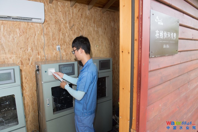 6月27日,運(yùn)維員在德清縣五四村農(nóng)村生活污水處理站進(jìn)行水質(zhì)在線檢測(cè)。