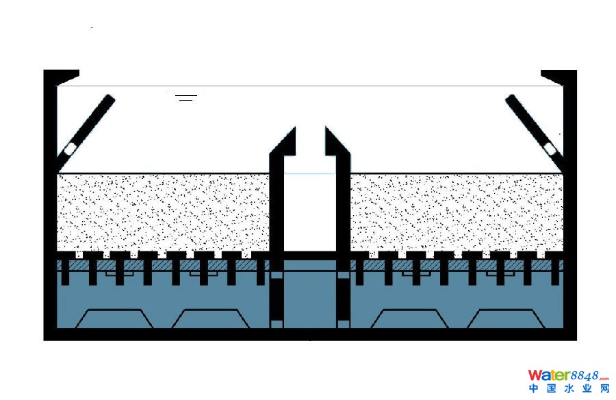 采用均質(zhì)濾料,恒水位、恒流量過濾,整床納污,過濾周期長;氣水反沖;全自動控制;應用范圍廣