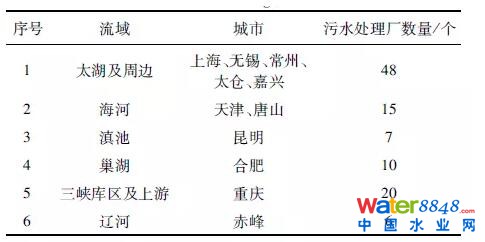 表1污水處理廠分布