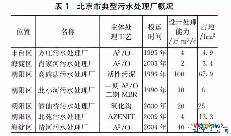 目前北京市東城區(qū)和西城區(qū)沒(méi)有大型污水處理廠。本文主要分析對(duì)象包括海淀區(qū)、朝陽(yáng)區(qū)和豐臺(tái)區(qū)的7座生活污水處理廠。除方莊污水處理廠外,其余污水處理廠主要分布在四環(huán)與五環(huán)之間。各個(gè)污水處理廠概況見(jiàn)表1。