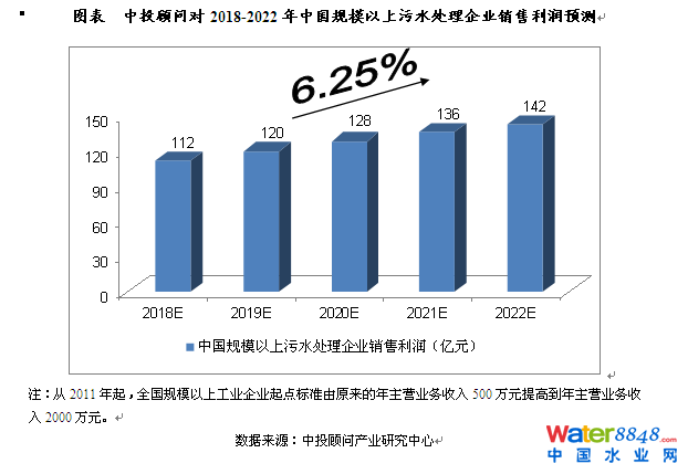 2016年,我國規(guī)模以上污水處理企業(yè)銷售利潤達(dá)到了101.51億元,相比上年增長33.66%。我們預(yù)計(jì),2018年我國規(guī)模以上污水處理企業(yè)銷售利潤將達(dá)到112億元,未來五年(2018-2022)年均復(fù)合增長率約為6.25%,2022年將達(dá)到142億元。