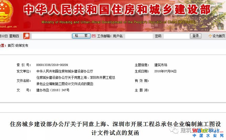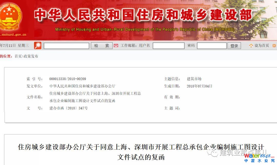 7月11日住建部發(fā)布《住房城鄉(xiāng)建設(shè)部辦公廳關(guān)于同意上海、深圳市開(kāi)展工程總承包企業(yè)編制施工圖設(shè)計(jì)文件試點(diǎn)的復(fù)函》。同意在上海、深圳市開(kāi)展工程總承包企業(yè)編制施工圖設(shè)計(jì)文件試點(diǎn)。試點(diǎn)期限為3年,自2018年8月1日起至2021年7月31日止。