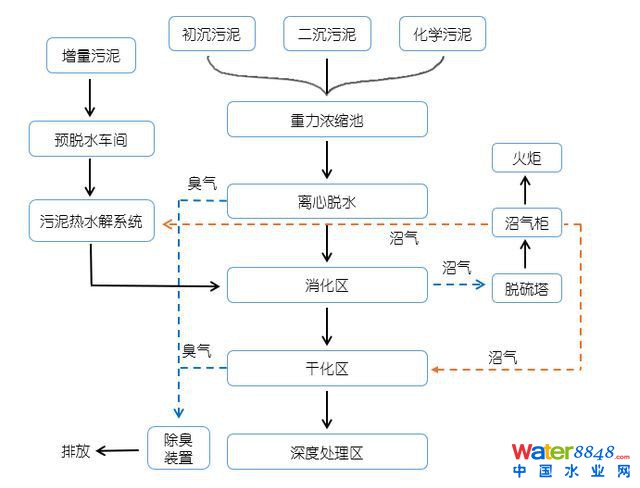 污水處理過程產(chǎn)生的剩余污泥首先通過重力和