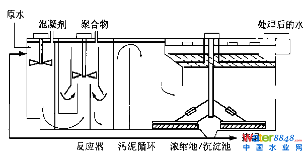 總配水井出水大于160萬m³/d的流量部分通過高效沉淀池進行處理,共計設(shè)3組, 每組6只池。