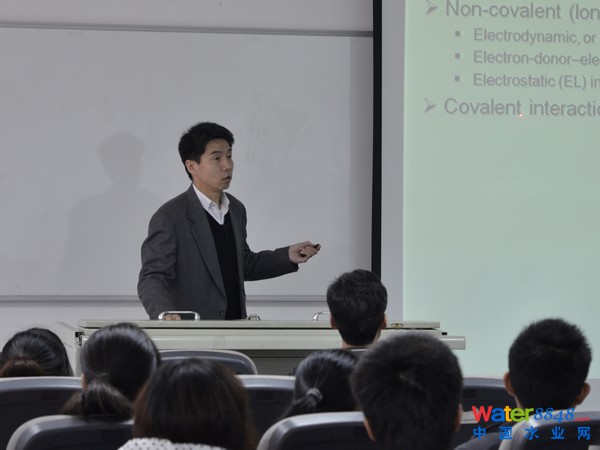 李曉巖教授1997年加入香港大學(xué),從事環(huán)境工程方面的教學(xué)與科研工作。李教授的研究領(lǐng)域包括廢水處理和飲用水處理等方面,是水環(huán)境中顆粒物遷移轉(zhuǎn)化行為研究和數(shù)值模擬方面的專家,曾分別于2008和2011年獲得國(guó)家自然基金和香港研究資助局的聯(lián)合資助。這次來(lái)到深研院,李教授帶來(lái)了題為“Research on Interface of Membrane Filtration”的學(xué)術(shù)報(bào)告。報(bào)告主要介紹了關(guān)于膜過(guò)濾技術(shù)方面的內(nèi)容,包括膜界面情況、膜表面顆粒物受力分析和膜污染處理方法。其中著重講述了關(guān)于膜表面材料處理的方法。
