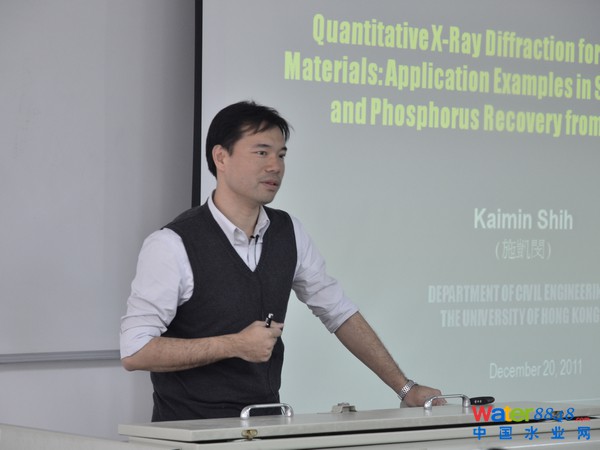 施凱閔教授于2007年加入香港大學(xué),其研究領(lǐng)域主要是面向固體廢棄物處理和水處理工程的環(huán)境材料開(kāi)發(fā)和應(yīng)用技術(shù),包括污泥和飛灰陶瓷化處理技術(shù)、水處理催化材料和膜材料合成等。目前施教授是香港固體廢棄物管理協(xié)會(huì)執(zhí)行委員以及《HKIE Transaction》雜志副編輯。針對(duì)資源回收等問(wèn)題,施教授應(yīng)邀作了題為“Quantitative X-ray Diffraction for Environmental Materials :Application Examples in Sludge/Ash Reuse and Phosphorus Recovery from Wastewater”的學(xué)術(shù)報(bào)告。報(bào)告中主要涉及金屬固定化和污染物資源回收等兩個(gè)大的方向。施教授為我們展示了他的最新研究成果,提高了我院師生對(duì)廢物資源化方法的認(rèn)識(shí)。
