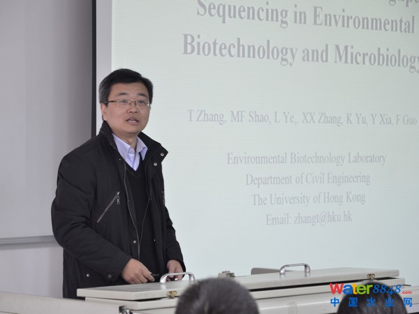 張彤教授分別在南京大學(xué)和香港大學(xué)獲得碩士和博士學(xué)位。張教授的研究領(lǐng)域主要集中于基于分子方法的環(huán)境工程研究。他在技術(shù)手段上關(guān)注熒光原位雜交、穩(wěn)定同位素探針、宏基因組等方面,而在環(huán)境過(guò)程的研究主要為廢水中的氮磷去除、新型污染物的生物降解規(guī)律等方向。同時(shí),張教授還出任德國(guó)施普林格出版社旗下《應(yīng)用微生物生物技術(shù)快報(bào)》期刊編委;谧约旱难芯浚瑥埻淌跒槲覀儙(lái)題為“Application of High-throughput Sequencing in Environmental Biotechnology and Microbiology”的學(xué)術(shù)報(bào)告。在報(bào)告中,張教授用淺顯的比喻和輕松的語(yǔ)言,把高通量測(cè)序技術(shù)展現(xiàn)給我院師生。由于微生物技術(shù)在環(huán)境工程中應(yīng)用得越來(lái)越廣泛,研究微生物行為及其DNA序列就顯得尤為重要,這項(xiàng)技術(shù)將進(jìn)一步推動(dòng)環(huán)境學(xué)科的發(fā)展。