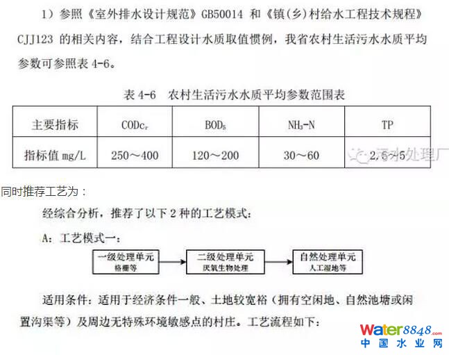 關(guān)于“厭氧+人工濕地”工藝,想必我不用多說(shuō)大家也都懂,對(duì)COD去除有一定的作用,但是脫氮除磷效果微弱或者說(shuō)是效率低下。浙江省發(fā)文《農(nóng)村生活污水處理工程技術(shù)規(guī)范編制說(shuō)明(征求意見(jiàn)稿)》給出了浙江省參考進(jìn)水水質(zhì)