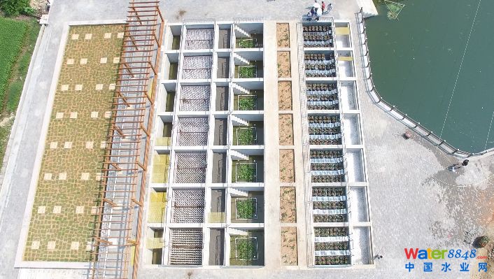 我國作為農(nóng)業(yè)大國,農(nóng)村人口達(dá)到50%,農(nóng)村人口居住相對較為分散,污水收集管網(wǎng)相當(dāng)欠缺,基本無法實現(xiàn)雨污分流,工業(yè)化污水處理模式無法在小規(guī)模的村級污水處理中得到應(yīng)用。農(nóng)村地區(qū)土地價格相對較低,特別在南方地區(qū)有大量廢棄水塘、荒地和灘涂可以有效利用。組合式人工濕地+氧化塘的技術(shù)適用于人口規(guī)模在5000人以下的小區(qū)、校園和農(nóng)村,可以有效利用地形優(yōu)勢,選擇地勢較為低洼的水塘、荒地或灘涂進(jìn)行改造,同時無需進(jìn)行雨污分流改造而建設(shè)大規(guī)模的污水收集管網(wǎng)。因此,人工濕地技術(shù)在處理農(nóng)村生活污水的過程中顯現(xiàn)出了巨大的優(yōu)勢。