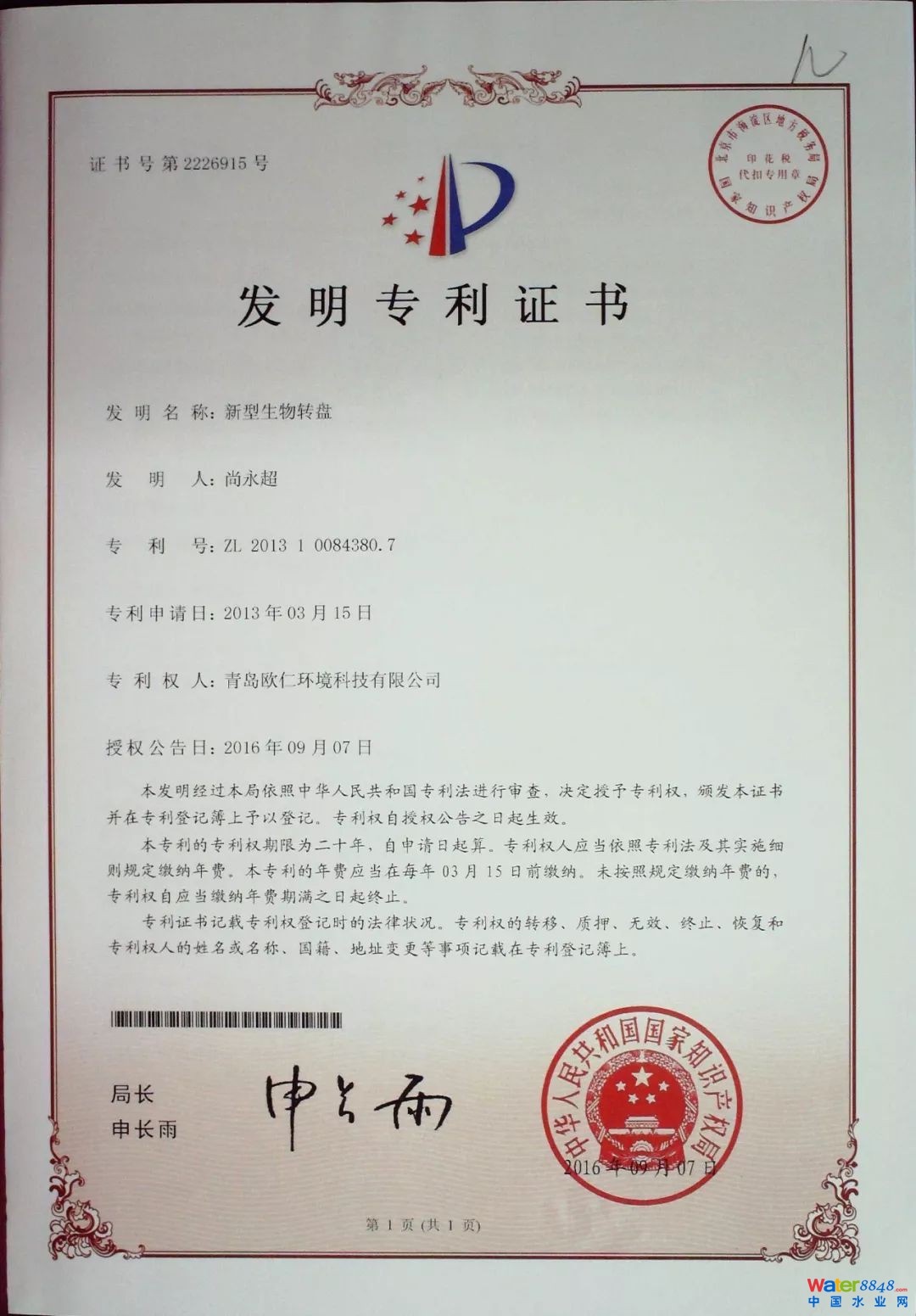 專利展播∣新型生物轉盤(ZL2013 1 0084380.7)